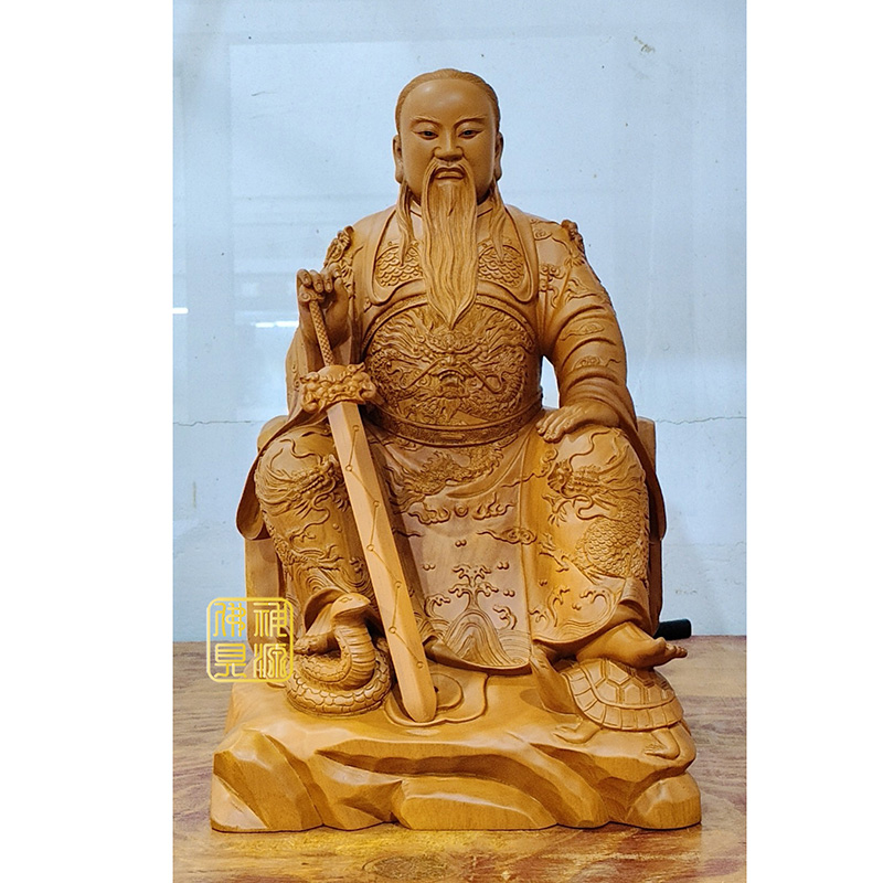 玄天上帝,北極玄天上帝,上帝公,真武大帝,上帝爺,帝爺公,北極祐聖真君 材質:香樟木 尺寸:39公分/高1尺3 特性:本色/微調色