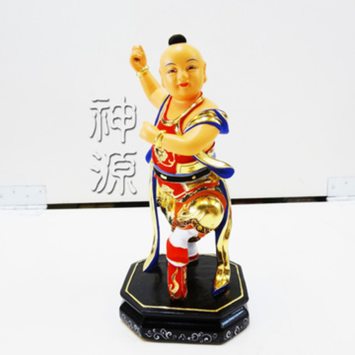 中壇元帥,太子,太子爺,三太子 材質:香樟木 尺寸:約26公分/8寸8 特性:珍珠漆彩繪安正金