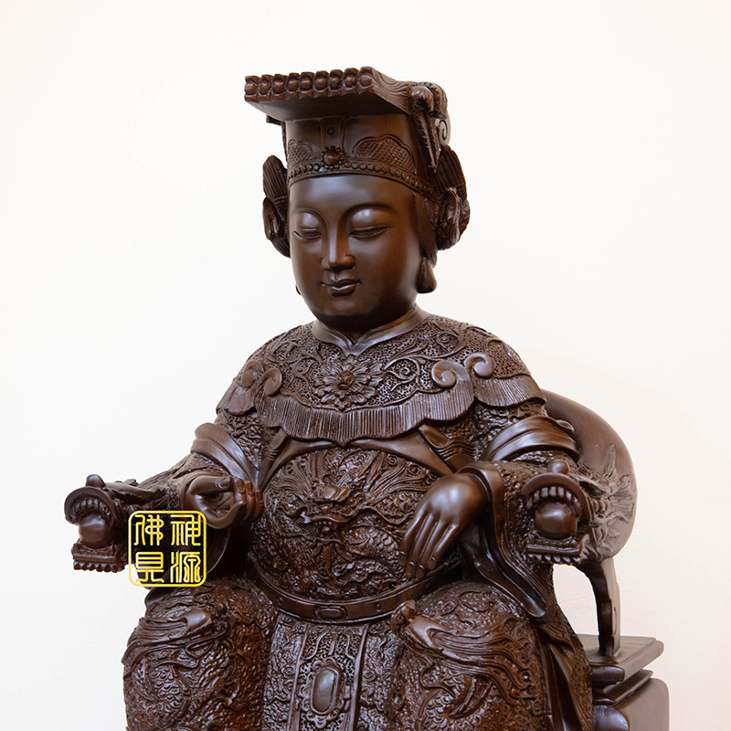 天上聖母,媽祖,媽祖婆,媽祖娘娘,聖母娘娘 材質:黑檀 尺寸:48公分/高1尺6 特性:本色/質地沉穩.密度極高