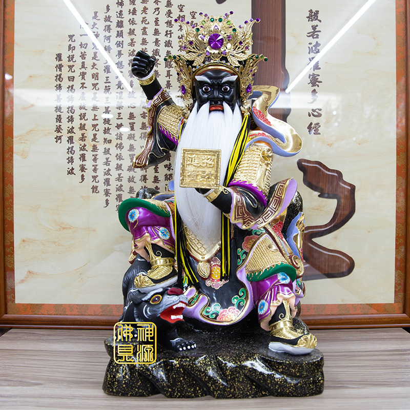 武財神,財神爺,趙光明 材質:香樟木 尺寸:約39公分/1尺3 特性:法拉活眼植髮/黑臉/白胡子