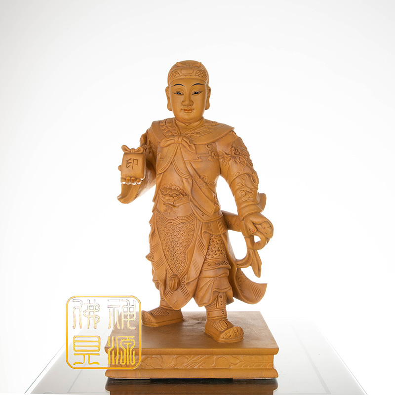 香樟木 主產長江以南及西南各地,表面紅棕色至暗棕色 橫斷面可見年輪.味清涼,有辛辣感 香樟木含有丰富的揮發性油脂,具有濃厚的特殊香氣 可以驅蟲防霉,防止腐蝕。自古以来是神像制作的最佳材料 本店聘請專業雕刻師彫刻. 保證真金箔