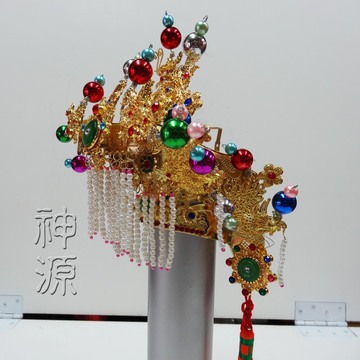 適用:1尺6神尊 材質:柳絲.加3個大圓玉珮 顏色:鍍金色,五彩珠