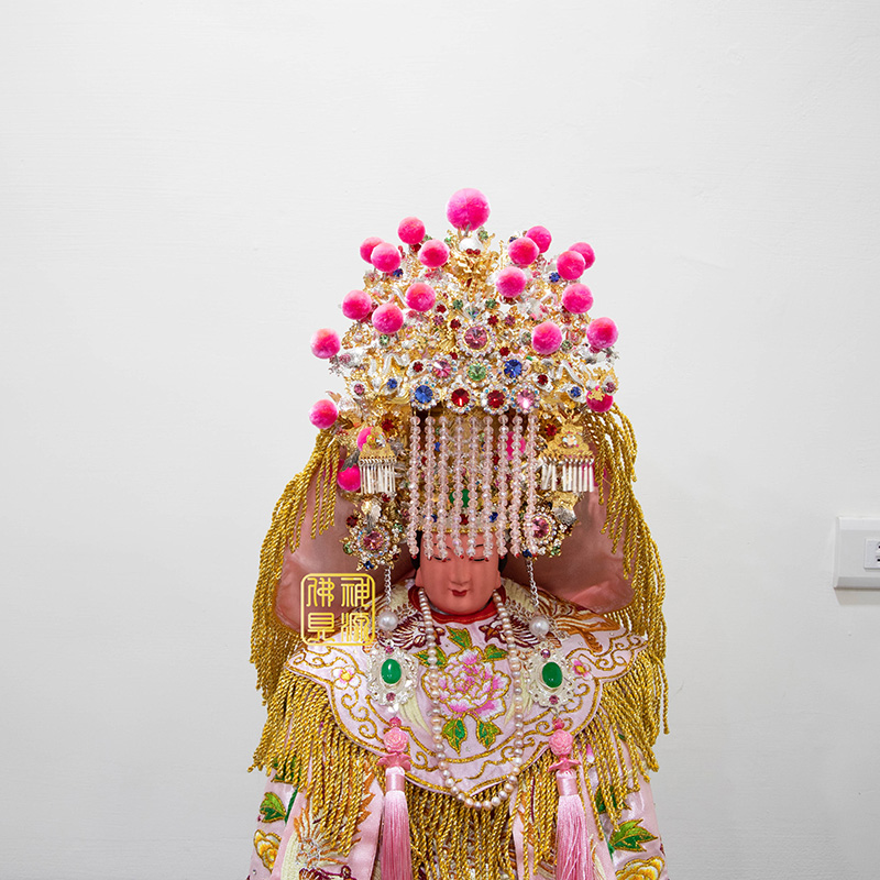 適用:尺3神尊,可訂做各尺寸 材質:台灣銅帽柳絲 顏色:雙色,施華洛世奇,桃紅絨球,訂做30天