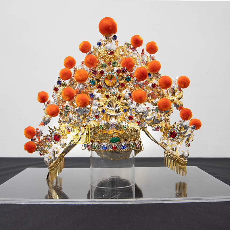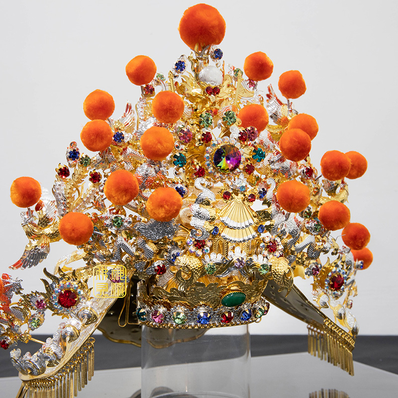 施華洛世奇王爺帽7寸雙.橘絨球