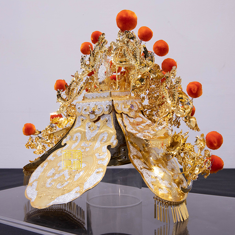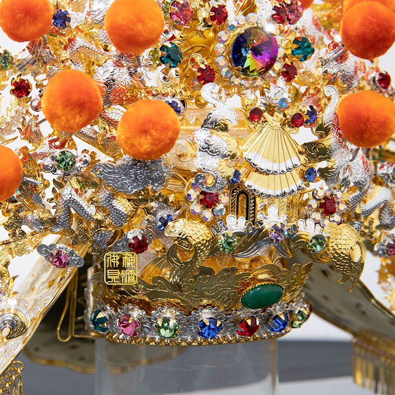 適用:尺3神尊,可訂做各尺寸 台灣銅帽特級柳絲 鍍雙色.施華洛世.橘絨球石訂製30天