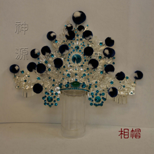 適用:尺3神尊,可訂做各尺寸 台灣銅帽特級柳絲 鍍銀色.藍白絨球.訂製30天