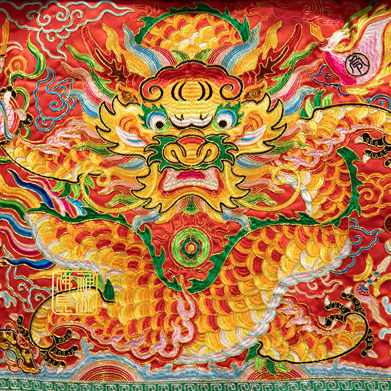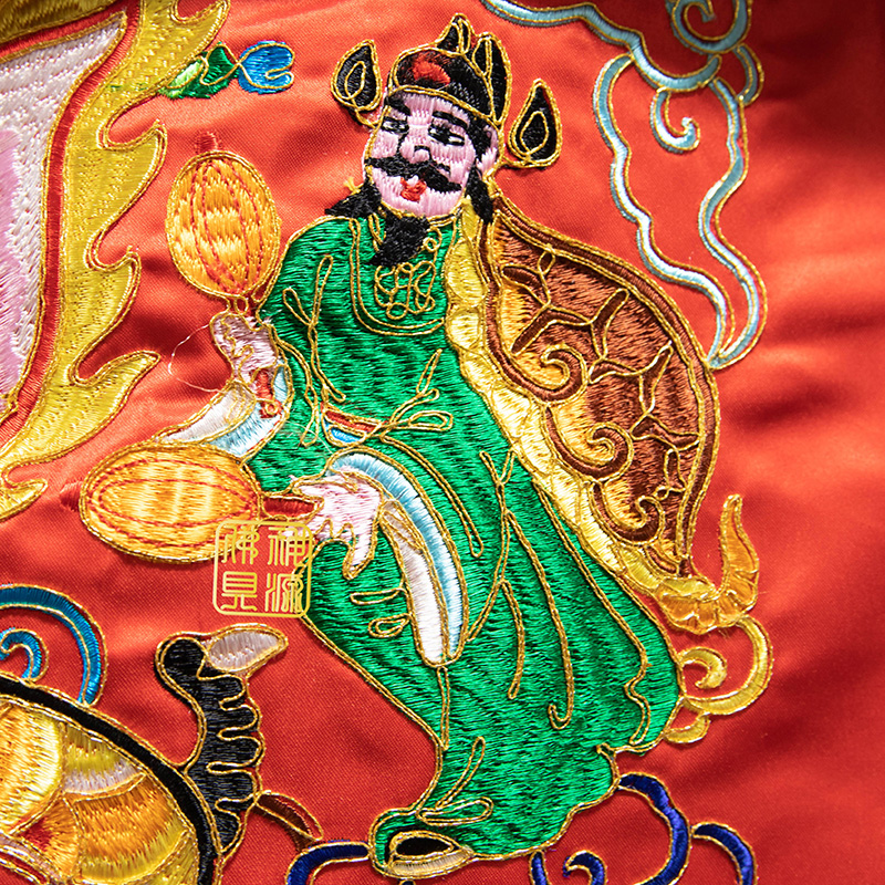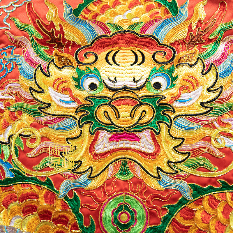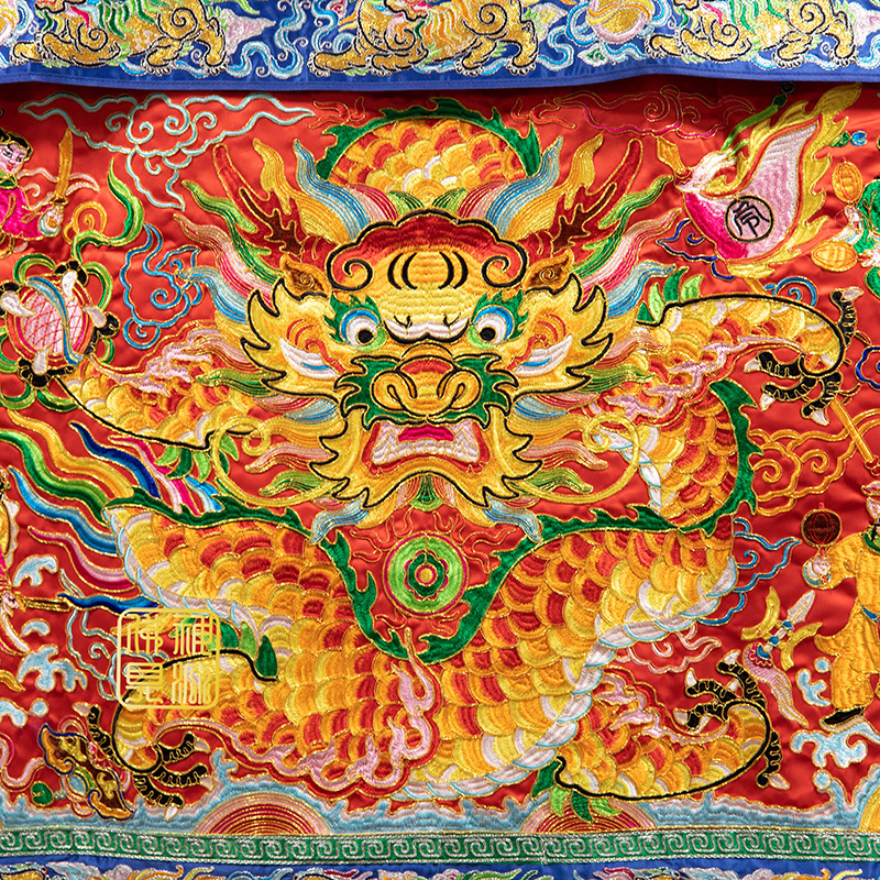 3尺6正面龍獅邊桌圍仿潮繡紅底