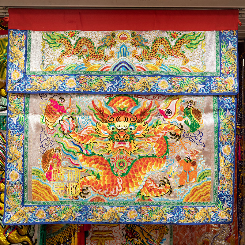 桌圍,桌裙,拜天公桌裙 銀蔥底正面猛龍桌圍 尺寸寬:3尺5