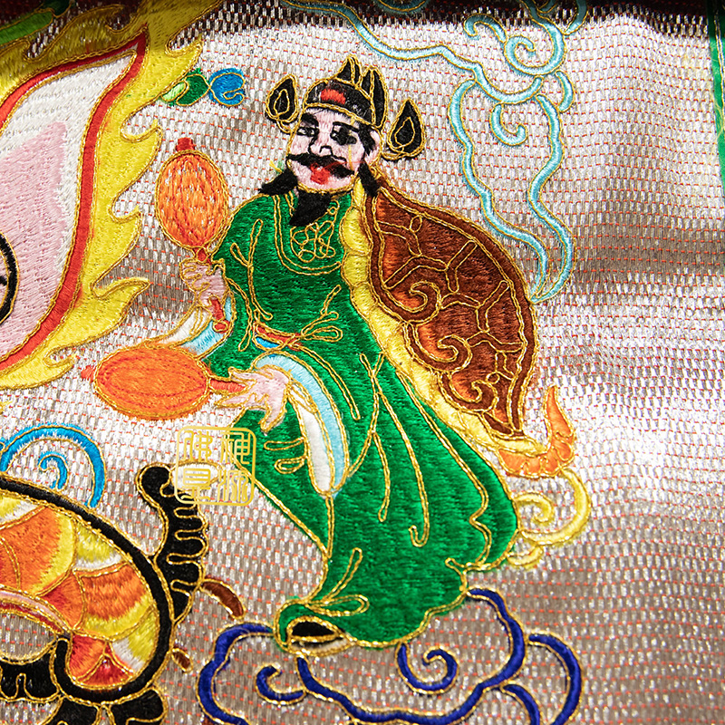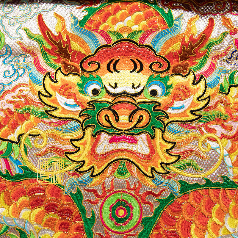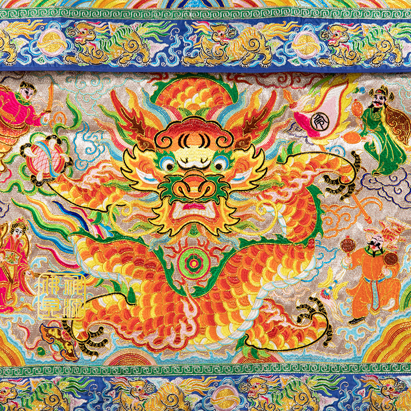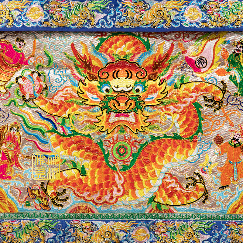 36正面龍獅邊桌圍仿潮繡銀底