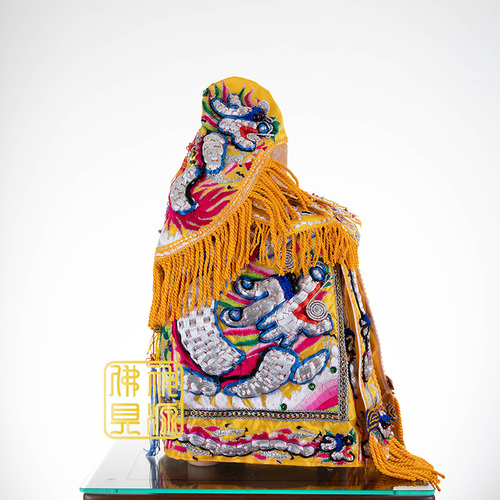 1尺3媽祖穿4件式 手工凸綿繡龍袍+奉帽 含手工葱披肩+凸綿肚兜