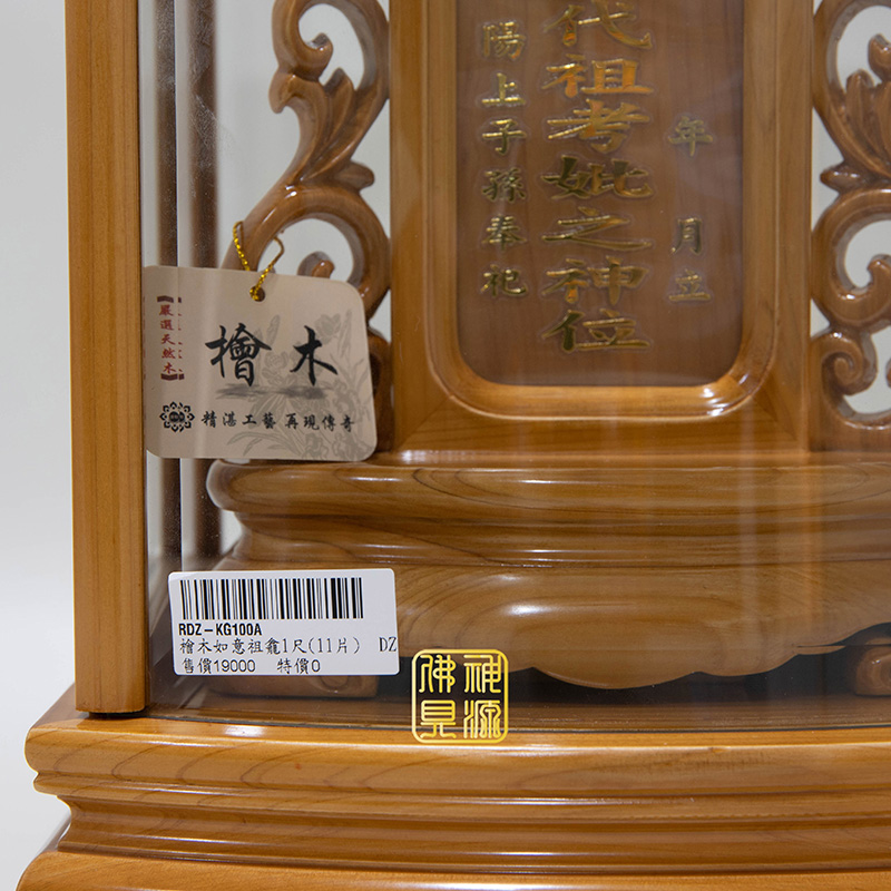 高1尺*寬7.5寸 檜木.11片內板設計 特色: 坐金元寶.防震