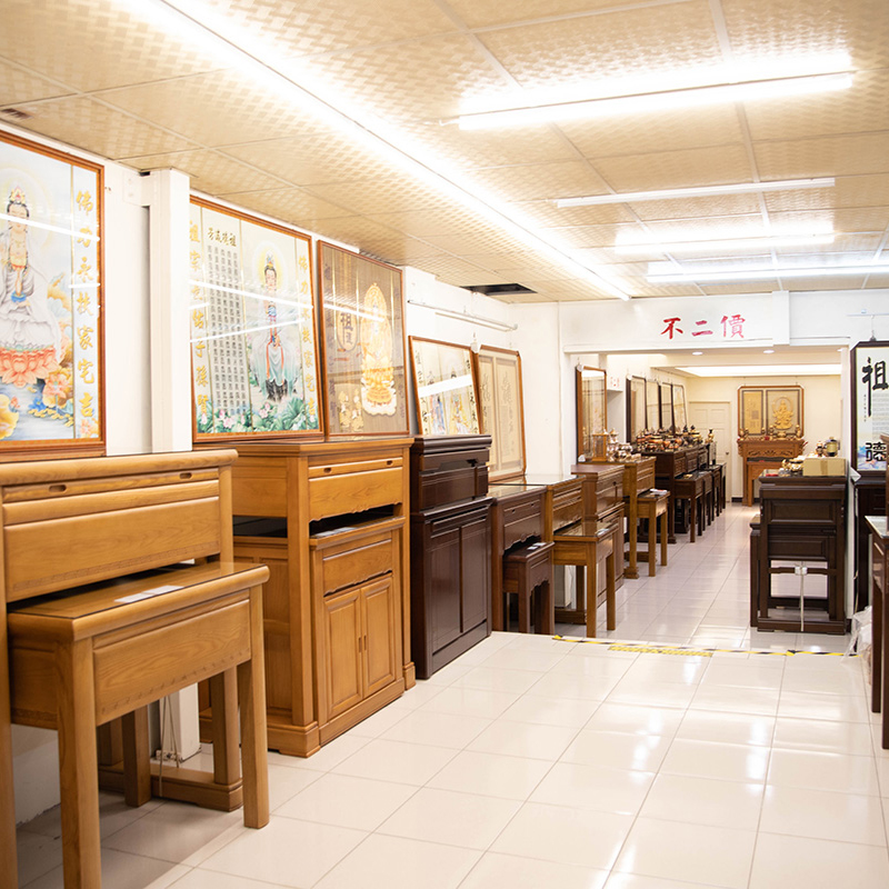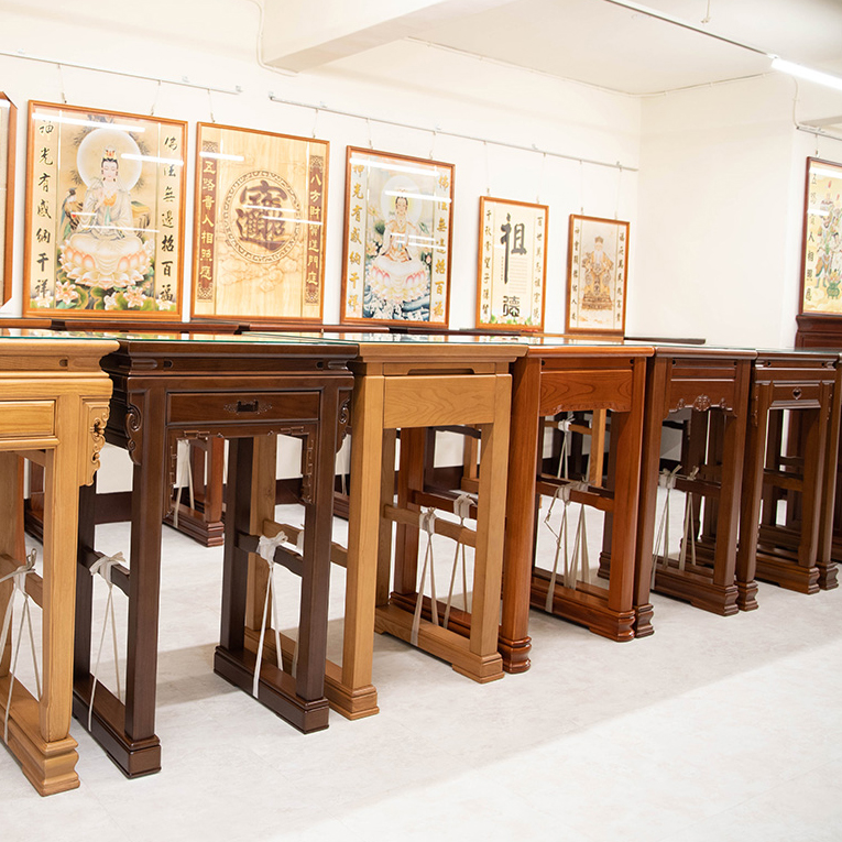 我們是一家堅持品質、注重信用的店家。 店內有眾多神桌型式、尺寸齊全。高檔不貴,年輪、花紋清晰漂亮 老師傅的刀法之細膩,採用古法製作、雖然比較耗時、 但是生產出的神桌是非常穩固的。 所用之漆面塗裝均經過多層分段塗裝、均為上等漆使用年限更為長久 竭誠歡迎至店參觀指教